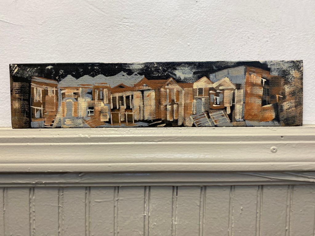 17.5″x4″ enamel paint on found glass medicine cabinet shelf